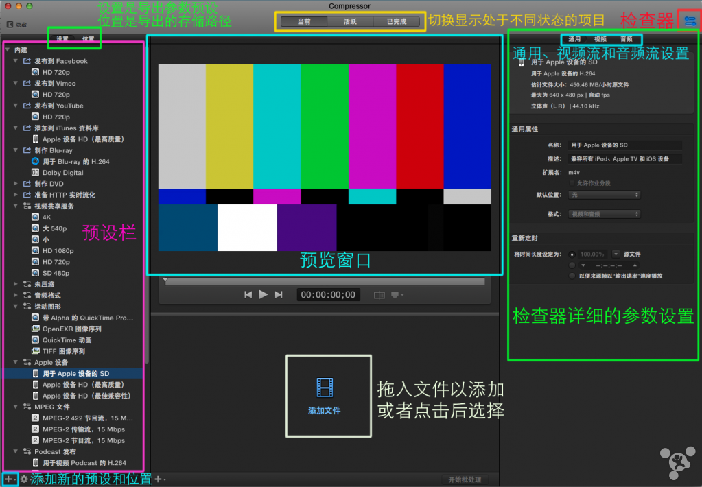 Compressor是苹果的一款用于压制和导出Final Cut Pro X项目、Motion项目的一款专业软件。由于Final Cut和Motion除了使用预设的导出参数,如果有Compressor那么可以将Final Cut和Motion项目发送到Compressor导出,Final Cut也能直接导入Compressor参数并使用自身渲染引擎导出。