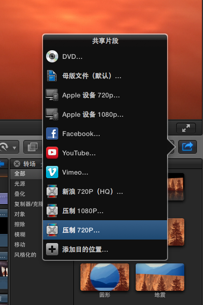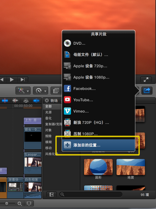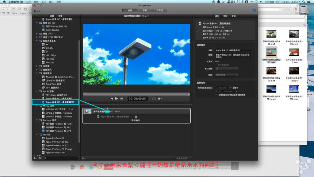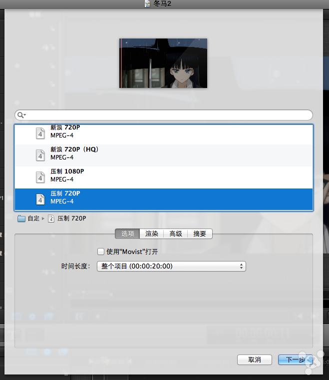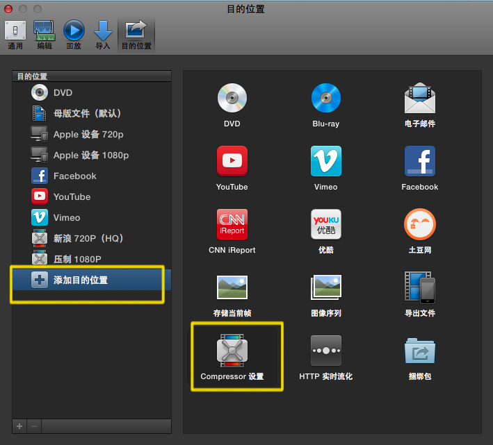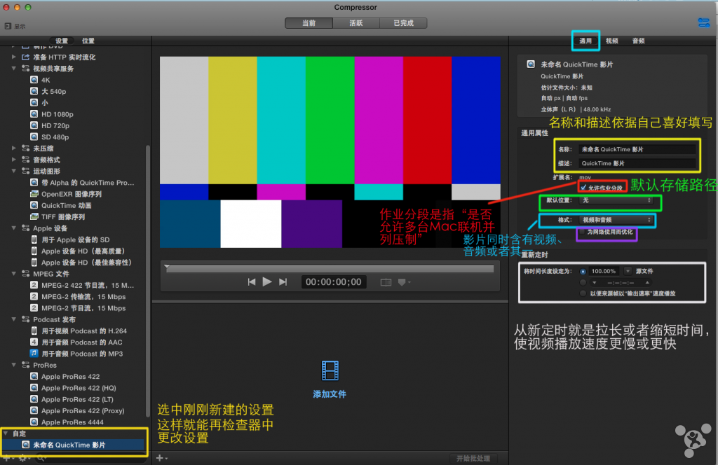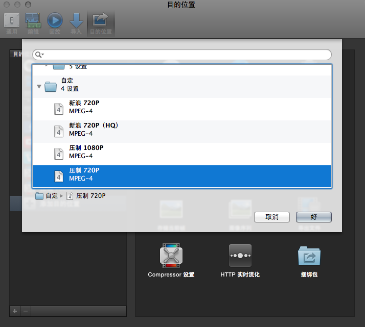 ②使用Compressor设置的参数导出(使用Final Cut渲染引擎),如图添加Compressor预置: