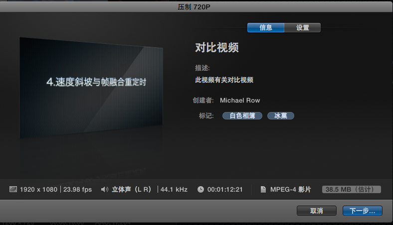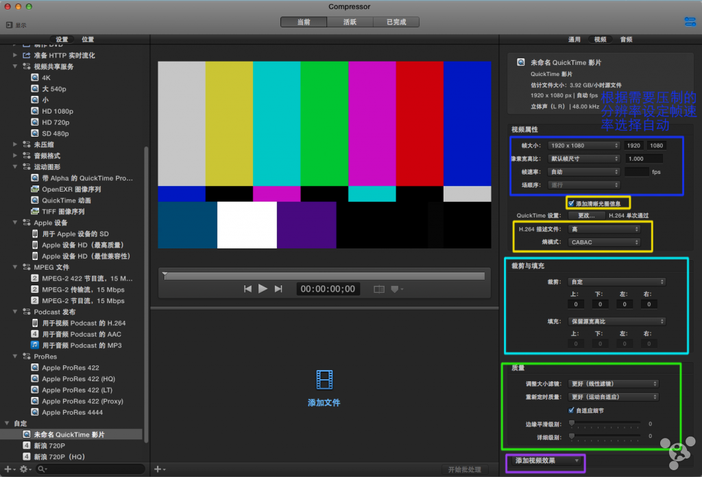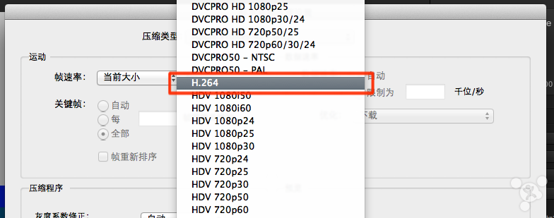 帧速率:选择【自动】(Compressor将使用片源的帧速率),不建议更改。