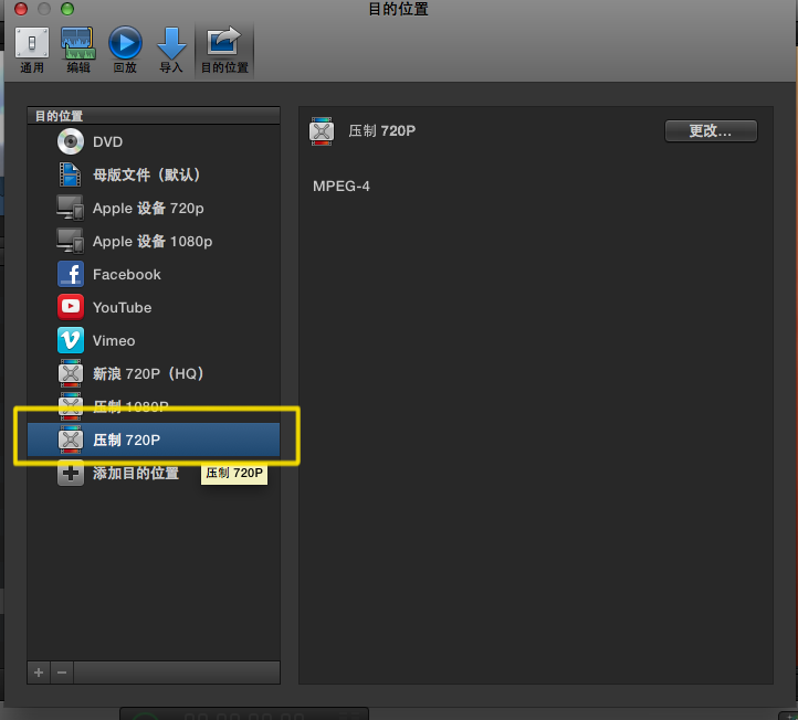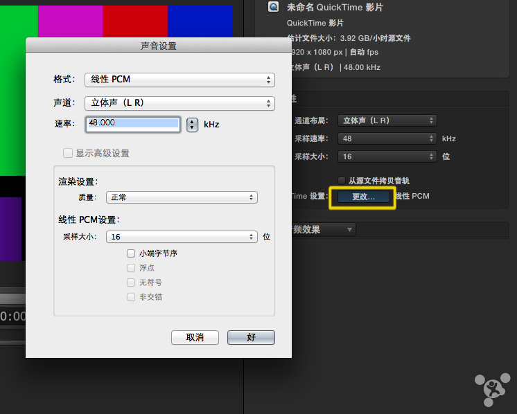 1.如图,点击QuickTime设置中的【更改】,切换为H.264编码。