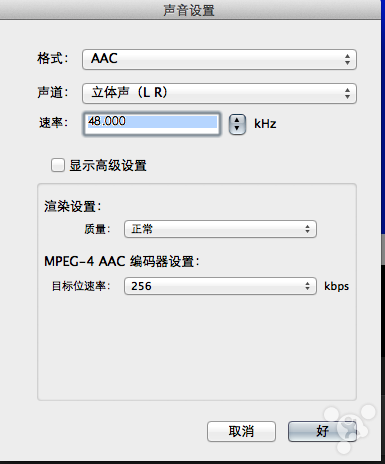 要求不高一般选择AAC 256KBPS的码率,音频质量也接近无损,同时能让最终压制的影片更小。