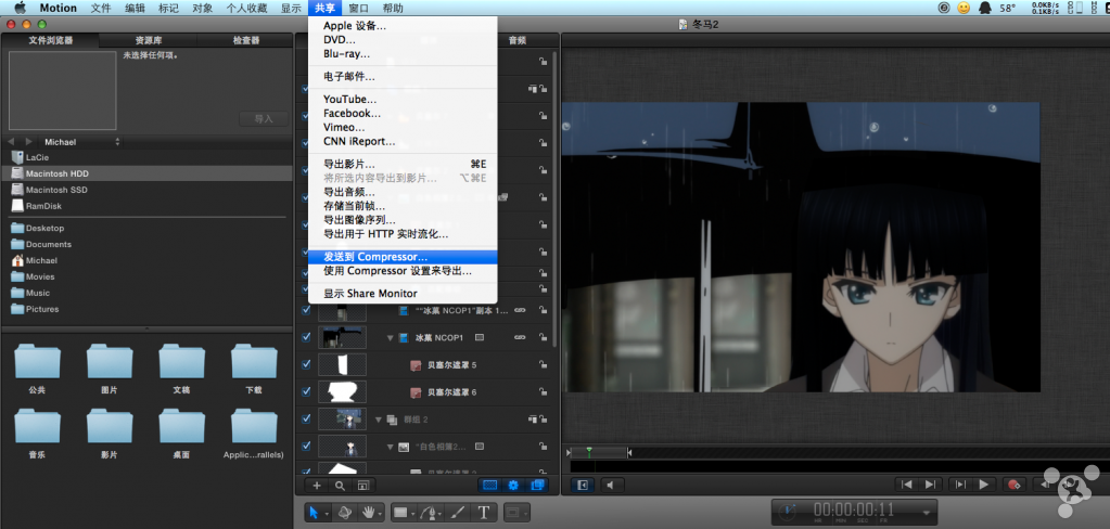 ②使用Compressor设置的参数导出(Motion渲染引擎)