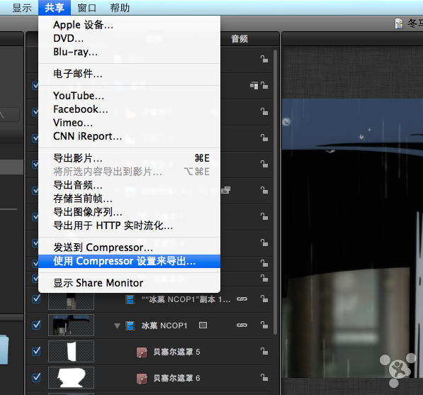①直接发送到Compressor导出(使用Compressor渲染引擎),如图: